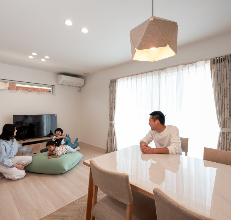 マイホームの完成に、「子どもと接する時間や夫婦で映画を見る時間が増え、ストレスが減りましたね」とご主人。子どもたちの笑顔も増えたと語った。