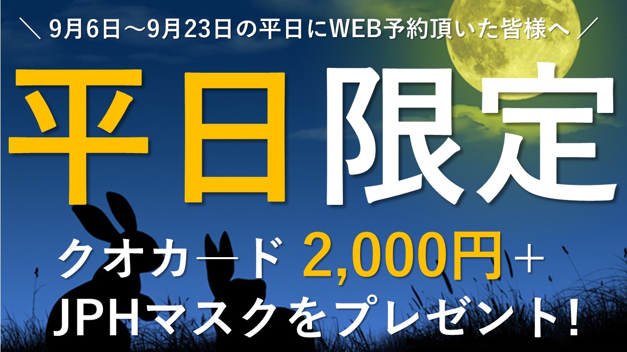 9/6(月)~23(木)の平日にWEB来場予約を頂くと、